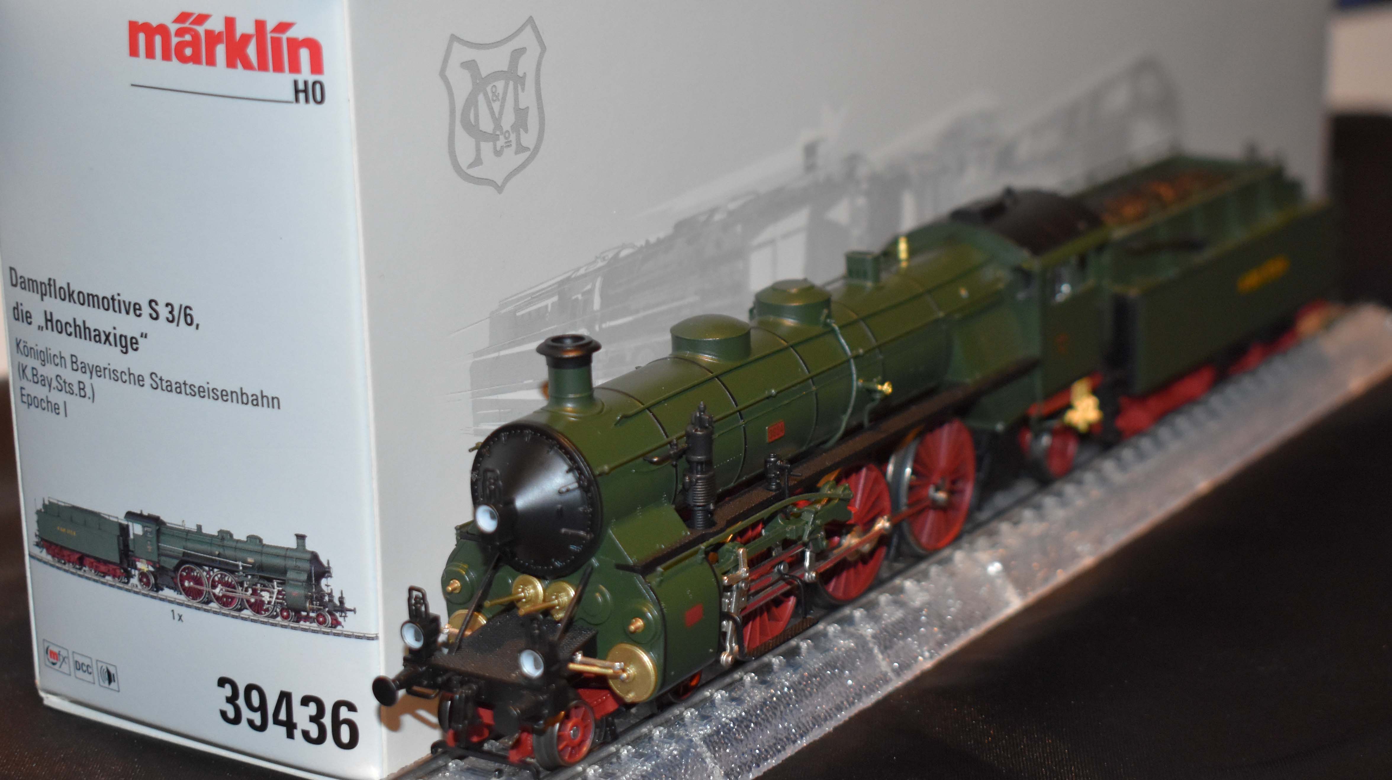 *Marklin 39436 Schnellzug-Dampflok der bayerischen Gattung S 3/6 als Lok der K. Bay. Staatseisenbahnen, Unterbaureihe d, die "Hochhaxige" mit 2.000 mm Treibraddurchmesser. Betriebsnummer 3624. Spätere 18 441. Betriebszustand um 1912.